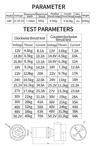 U40 3500W 40KG Schub 12-50V Unterwasser-Meeresbodenpropeller Propeller Wasserdichter bürstenloser Motor für ferngesteuerte Köderschlepper Nestboot U-Boot