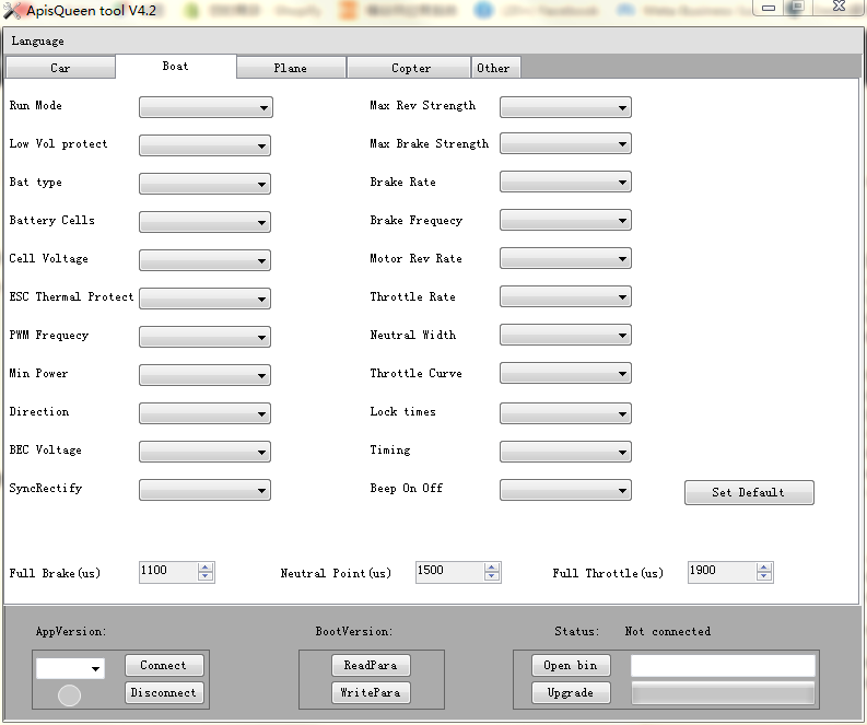 【אם אינך מוצא את יציאת ה-com, עליך להוריד ולהתקין את מנהל ההתקן של Ch340 או Ch341. חבר את המחשב וכבל האות ESC עם Usb, לחץ על כלים, בחר יציאת com, לחץ על Connect, ולאחר מכן הפעל את ה-ESC, אשר שהחיבור הצליח, ולאחר מכן Readpara כדי לקרוא את הפרמטרים, ואז שנה את הפרמטרים המתאימים, ואז לחץ על writepara כדי לכתוב ולשמור.】