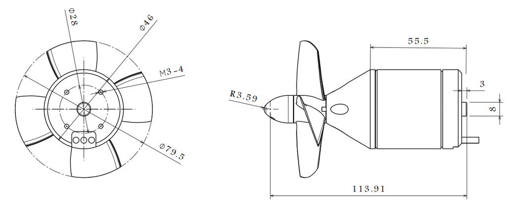 Водонепроницаемый бесщеточный двигатель A4650 с пропеллером, 12-24 В, тяга 10 кг.